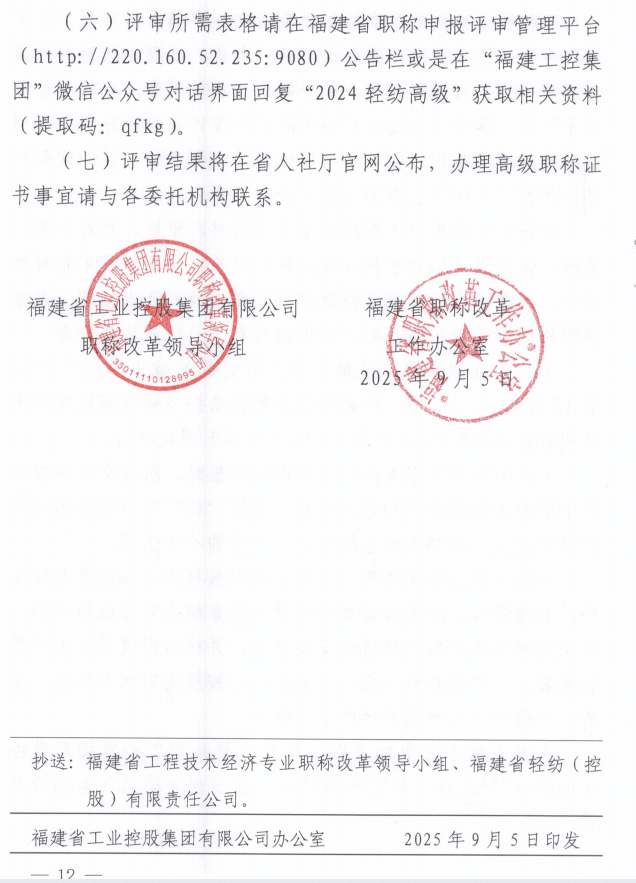 福建省工業(yè)控股集團(tuán)職稱改革領(lǐng)導(dǎo)小組福建省職稱改革工作辦公室文件-關(guān)于開展福建省輕紡專業(yè)高級工程師職稱評審工作的通知.pdf