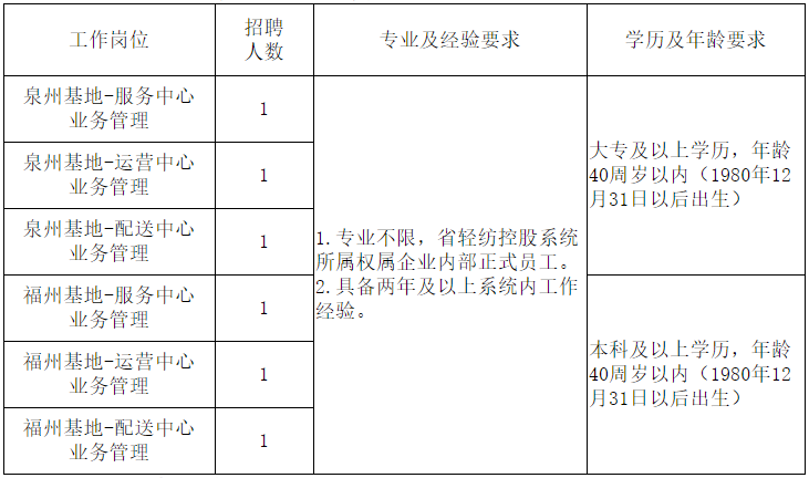 面向福建省輕紡控股系統(tǒng)內(nèi)公開選拔符合條件的人員。