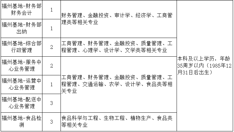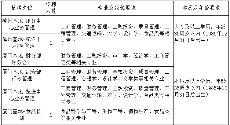福建海峽軍民融合產(chǎn)業(yè)發(fā)展有限公司是專門從事副食品籌措供應(yīng)保障的國(guó)有企業(yè),公司成立于2020年3月9日,注冊(cè)資本2億元人民幣,隸屬于福建省輕紡(控股)有限責(zé)任公司。地址:福建省福州市倉(cāng)山區(qū)金林路35號(hào)互聯(lián)網(wǎng)小鎮(zhèn)2號(hào)樓3層。公司主營(yíng):農(nóng)副產(chǎn)品、水產(chǎn)品、糧油及制品、食品飲料、調(diào)味品、日化用品、酒及其他副食品等的批發(fā)零售;預(yù)包裝食品、散裝食品、乳制品的批發(fā)零售;園區(qū)管理化服務(wù);單位后勤管理服務(wù)。為滿足業(yè)務(wù)發(fā)展的需要,公司擬面向社會(huì)公開(kāi)招聘37名工作人員,現(xiàn)將有關(guān)招聘事項(xiàng)公告如下: