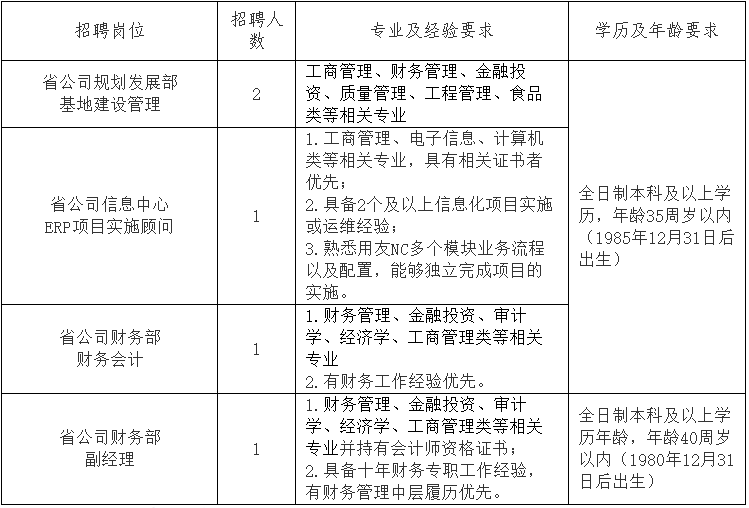 (五)省公司本部招聘崗位的任職資格